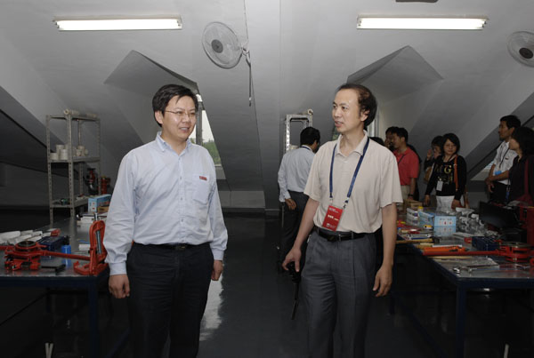 建设部高等学校建筑环境与设备工程专业教育评估委员会委员考察我热工实验室.JPG