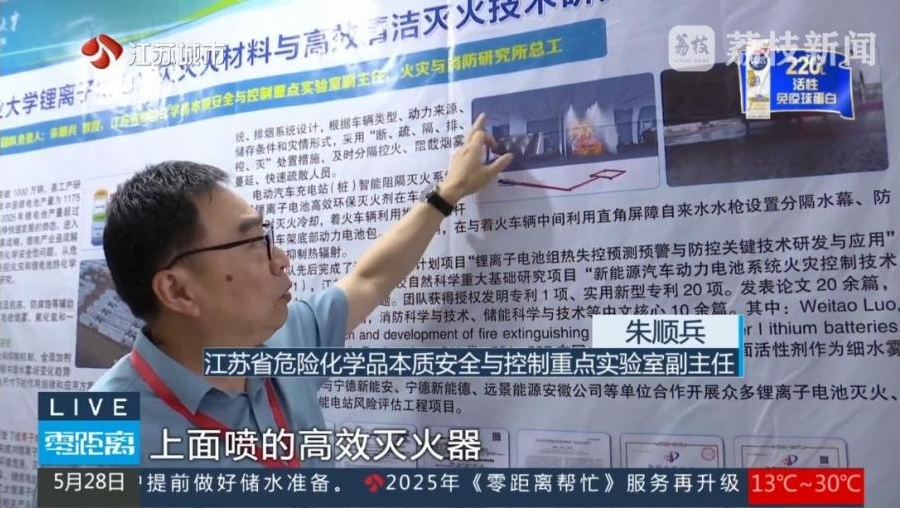 2025年5月28日,江苏电视台城市频道新闻报道了中心的锂离子电池高效环保灭火剂产品及其电动汽车充电桩灭火系统设计方案;