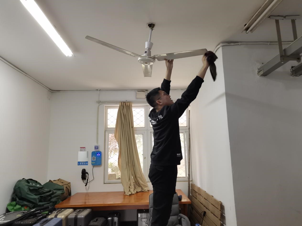 春夏季节蚊虫滋生,多次有同学反映宿舍中出现蜈蚣、蚊虫等,党支部采购了消毒液、杀虫剂等物资,统一对宿舍阳台、大厅、洗手间等公共区域进行了消毒驱虫。当天下午,支部党员带头开展宿舍卫生清扫,周围同学们见状也纷纷拿起工具,参与到卫生打扫队伍当中。同时针对空调滤网、电风扇、阳台、洗手间等卫生死角进行重点清洁。在同学们的共同努力下,宿舍面貌焕然一新,公共区环境得到很大改善。