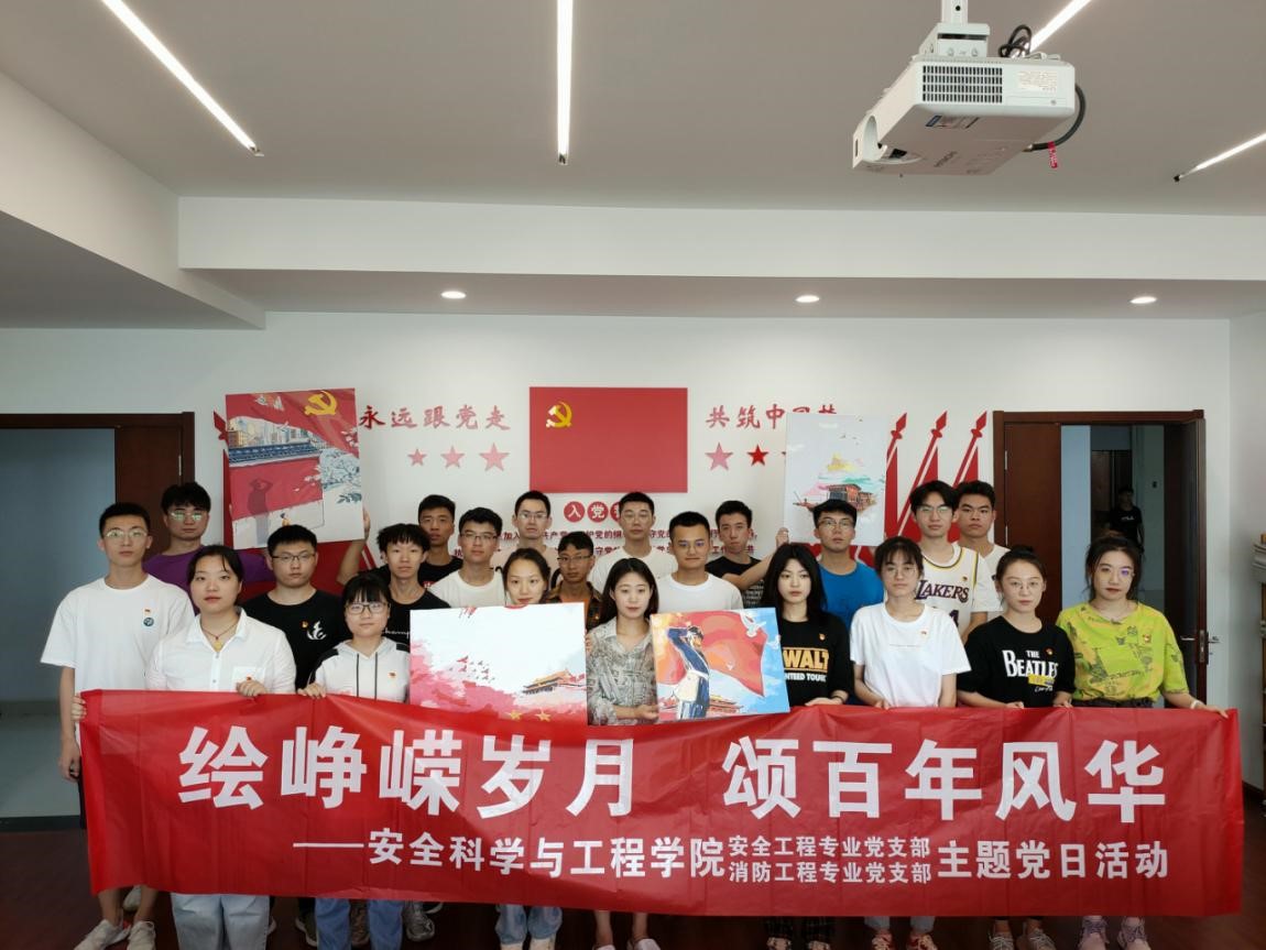 为深入挖掘红色资源,讲好党史故事,英国上市公司365安全工程专业党支部、消防工程专业党支部于2021年6月19日在厚德楼411党员活动室以“党史+艺术”的创新形式开展了“绘峥嵘岁月,颂百年风华”主题党日活动。学院辅导员乐平老师与本科生党支部同学共同绘画党史故事展板,汲取前进精神力量,以实际行动为建党百年献礼。