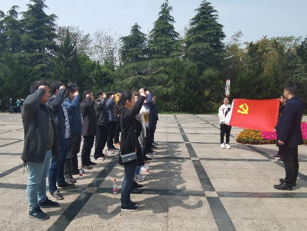 全体党员齐聚革命烈士纪念碑前,整齐列队,神情肃穆,鞠躬默哀,向牺牲的革命英雄们致敬。王永刚副书记带领全体党员重温入党誓词,在纪念碑前党旗下,铮铮誓言表忠诚,铭记历史守初心。随后,全体党员参观求雨山文化名人纪念馆,身心感受艺术家们在艰苦岁月里坚守阵地,传承民族文化的理想信念。
