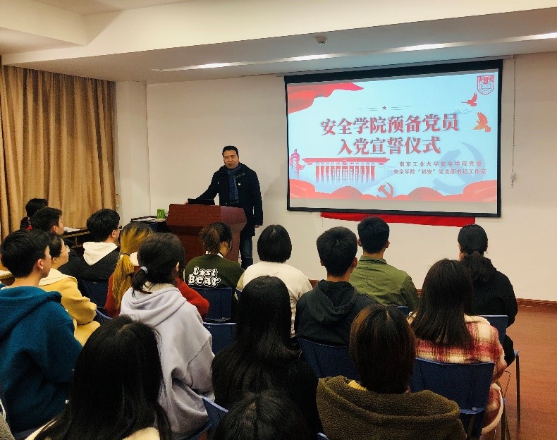 3月18日下午6:30,安全学院党委在厚德楼409学院党员活动室举行预备党员入党宣誓仪式。党委副书记王永刚参加宣誓仪式,学院“初安”党支部书记工作室张晨东主持本次活动。