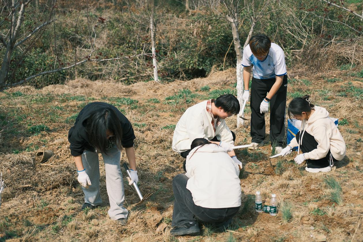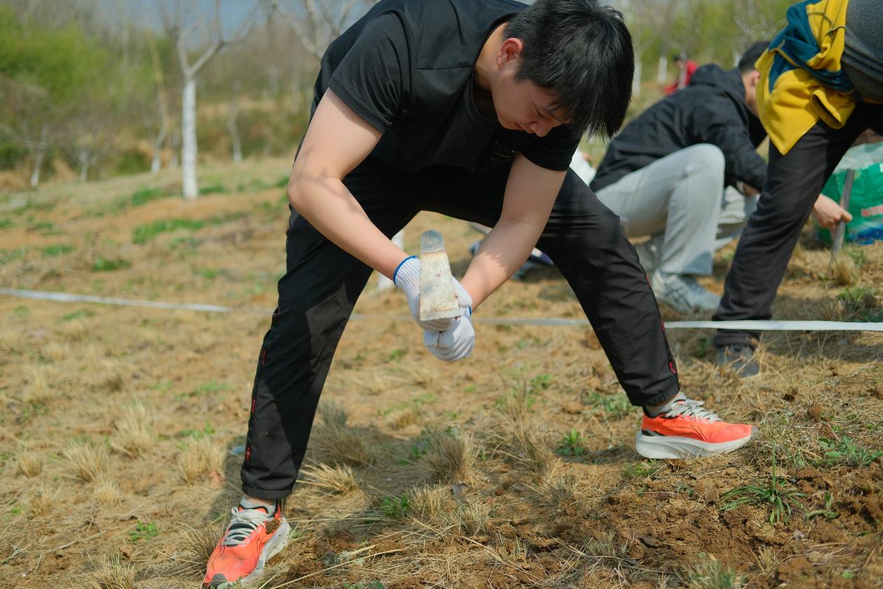 生态为笔绘校园,匠心传承启新程。春阳煦暖,海棠苑内党旗飘扬。活动伊始,后勤人员现场示范种植流程,并强调了翻土深度、株距误差、覆草厚度等科学种植要点。随后,师生党员们有序分工,挥锹铲土、扶苗定根……现场一片热火朝天。经过一个小时的奋战,千余株粉黛草幼苗在海棠苑“安家”,与周边景观相映成趣。