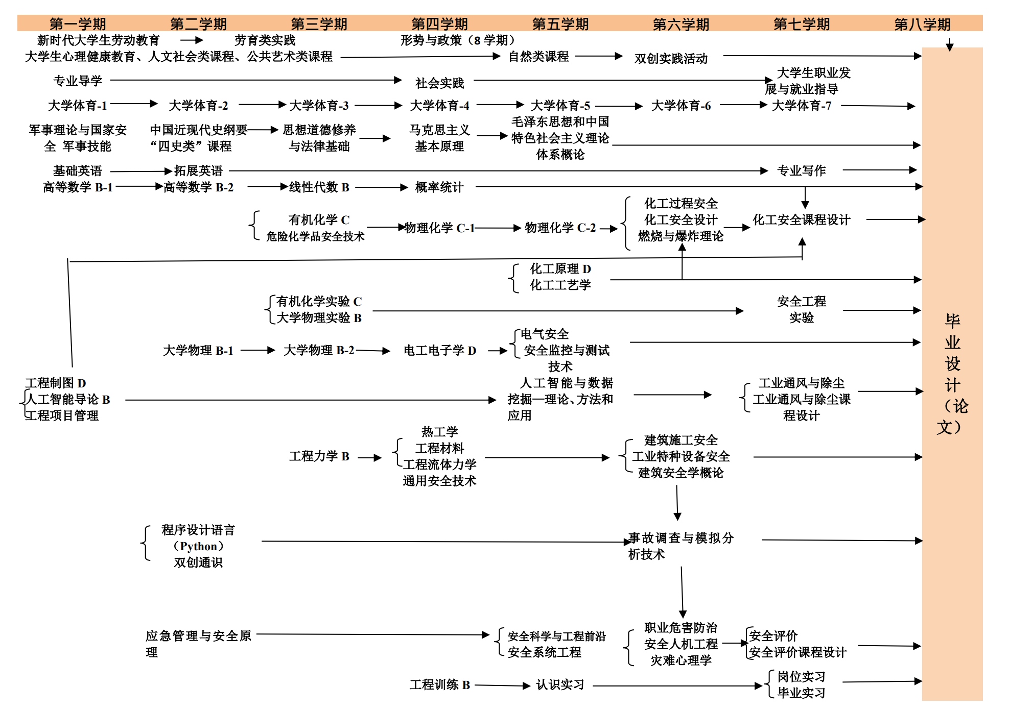 英国365集团安全工程专业旨在培养掌握安全领域工程技术知识,具备创新精神和实践能力的优秀人才。通过系统的课程设置和多元的实践环节,包括人文社会科学、工程基础、人工智能、专业理论及实践课程,学术讲座、前沿讲座、社会实践和创新创业活动,毕业生不仅拥有深厚的专业知识,还能熟练应用现代技术和工具,有效分析和解决复杂安全工程问题。同时,通过职业与人生观辅导,毕业生坚守核心价值观,注重社会责任,具备团队协作和沟通能力,以及终身学习意识。有工程报国、工程为民的意识,为国家安全行业和安全生产贡献力量。本专业学生毕业时,通过本科阶段的培养和训练,应具备下列能力和素养: