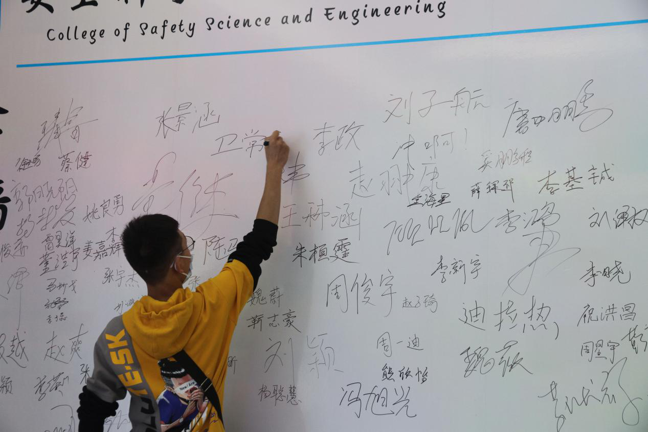 10月5日上午7:30,学院迎新准备工作全部到位。南门志愿点,志愿者们轮班坚守在迎新一线,引导帮助新生搭乘校园接驳大巴,前往檀香、宿舍区报到。檀香、象山宿舍报到点,学院辅导员老师、助理班主任与高年级志愿者们一同接待新生,扫码签到、分发钥匙、搬运行李,有条不紊、井然有序。安全学院学科楼内,签名墙互动、新生材料发放、入学礼物领取,现场无不体现出安全学院对2020级新生的关心体贴与热情欢迎。