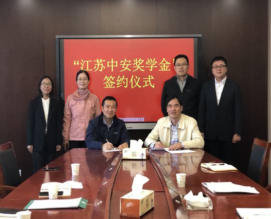 11月20日上午,在安全学科楼311会议室江苏中安科技服务有限公司总经理丁杰一行到访安全学院,双方开展合作交流并举行“江苏中安奖学金”签约仪式。