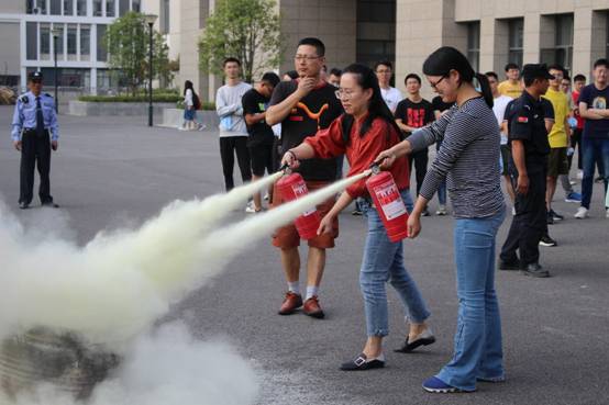 安全培训结束后随即开展了消防应急演练。安全学科楼演练警报响起,学科楼内全体人员按照规定路线有序迅速地撤离至紧急疏散集合点。施自力老师现场演示了灭火器的正确使用方法,并进行了消防知识问答互动。在安保部人员的指导下,在场师生进行了灭火演练。通过本次理论培训及现场演练实操,进一步增强了广大师生的安全意识,提高了大家对应急预案的熟练程度以及突发事故时的自护自救能力,共同营造安全舒适的教学科研环境。