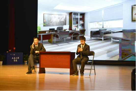 比赛开始前,改编版安全主题歌曲《逝去的歌》将实验室安全和日常生活安全点滴融入真情,以安全之歌唱响对生命的礼赞;小品《天网恢恢》为我们敲响网络骗局警钟,诈骗者最终逃不出法律的制裁。安全学院同学们的表演赢得了现场观众的热烈掌声,随后比赛正式开始。