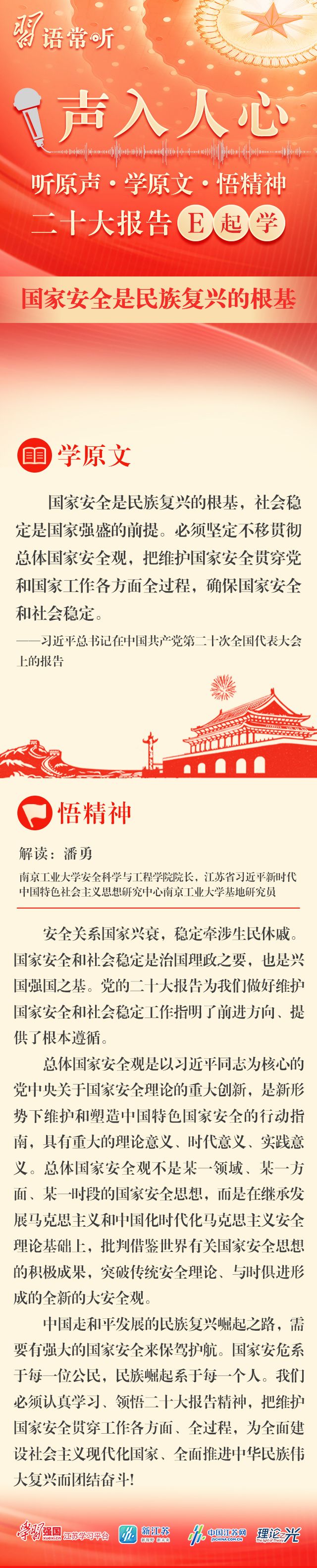 为深入学习宣传贯彻党的二十大精神,更好推动党的二十大精神入脑入心、家喻户晓,中国江苏网品牌栏目《习语常听》特别策划推出100期图文音频融媒产品《声入人心》,与大家一起学习领悟党的二十大报告的丰富内涵和精神实质。