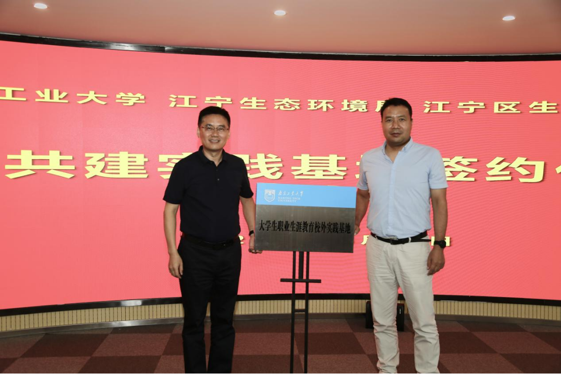王永刚以“1234” 四个数字为切入点简要介绍了学校情况,并表示此次共建是积极构建大学生职业生涯体验平台的重要举措。张瑞芳结合学科特点、专业设置等方面简述学院基本情况,希望实现协同育人、协同创新、协同发展。随后,双方签署了职业生涯教育校外实践基地协议、社会实践协议,并举行了揭牌仪式。最后,师生一行走访参观了江宁生态环境监测监控中心实验室。