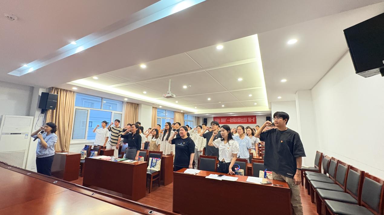 誓言铿锵,信念如磐。在学院党委副书记张瑞芳的带领下,全体与会党员面向鲜红党旗,高举右拳,庄严齐诵入党誓词,重温入党初心,筑牢信念根基。