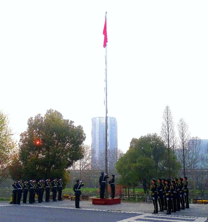 活动伊始,在校国旗护卫队整齐坚定的正步声中,在全体师生的注目礼下,五星红旗被护送着缓缓移向国旗台。伴随着铿锵有力的《义勇军进行曲》,在朝阳的映照下,五星红旗冉冉升起。随后,校国护队队员为同学们普及《国旗法》、《国歌法》,增强了同学们保护国旗国歌的意识。