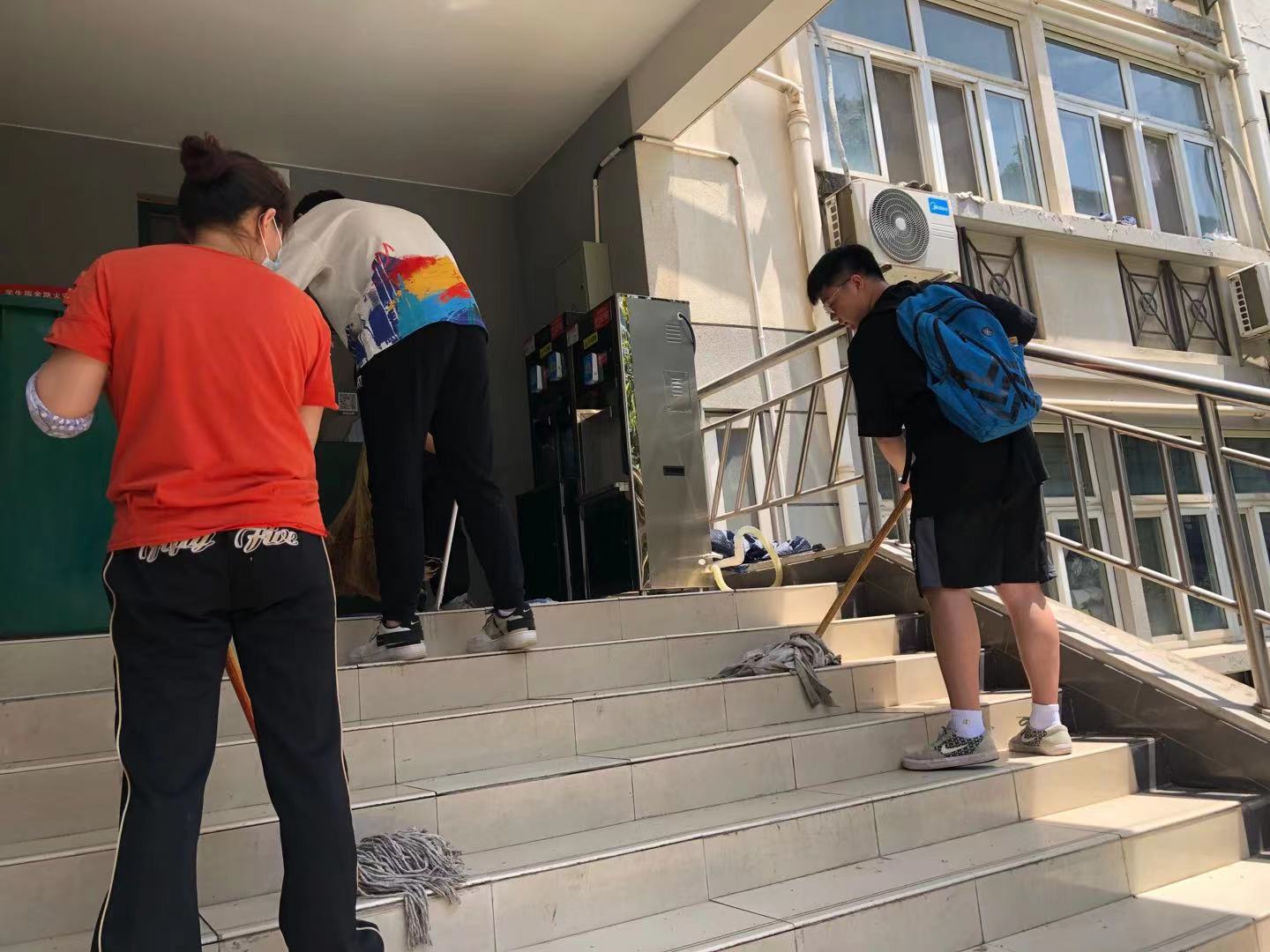 劳动开始前,学生公寓服务中心工作人员向大家详细讲解了劳动要领和注意事项,进行人员分组和劳动分工。随后,在保洁阿姨的指导下,同学们分批对宿舍楼道内部及楼栋外环境进行整理。清理过道杂物、扫地、拖地、抹扶手、撕除小广告、耙枯叶、捡烟头......经过近一小时的打扫,象山苑18栋被清理得焕然一新。同学们虽满头大汗,但看到劳动成果都深感自豪。