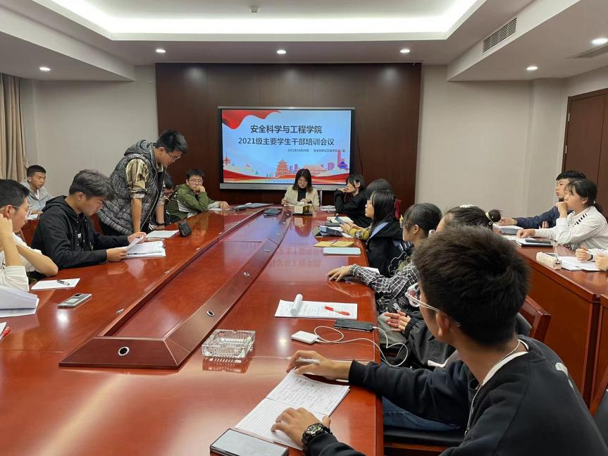 2021年10月28日下午,安全学院在厚德楼311召开2021级主要学生干部培训会。本次会议由辅导员王茜老师主持,21级各班班长、团支书、学委参会。