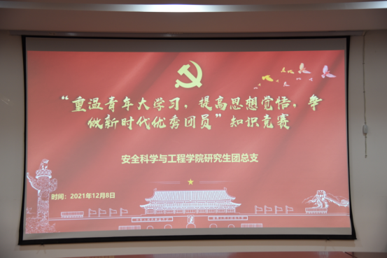 竞赛活动共有5支参赛队伍,分别来自安研21级、安研20级以及博士生团支部。现场紧紧围绕着党史教育展开,竞赛题目有助于青年团员认真学习贯彻习近平新时代中国特色社会主义思想,加强青年团员对党史知识的了解,提高思想政治觉悟水平,坚定理想信念永远跟党走。同时,竞赛设置观众互动环节,帮助同学们进一步学习党的光辉历程、基本路线及党章等知识,使党史学习教育更加深入人心。