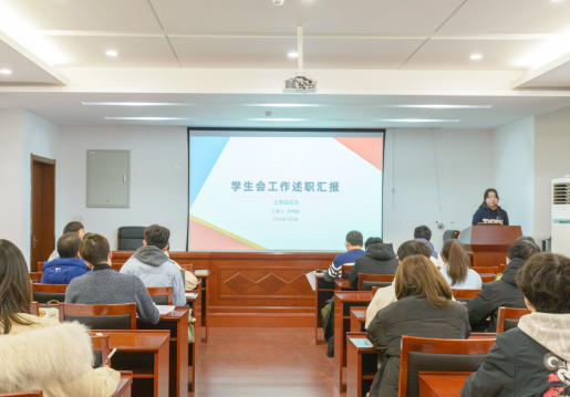 会上,学生会主席团成员和各部门负责人依次就本学期工作和个人情况进行了述职汇报,李敬、史帆两位老师进行提问,述职人员现场答辩。