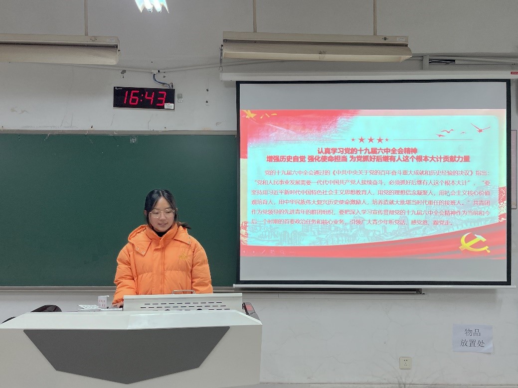 会上,院研究生会宿记米、王荷同学领学了《增强历史自觉 强化使命担当 为党抓好后继有人这个根本大计贡献力量》,从“牢牢把握为党育人的历史方位,团结带领青少年矢志不渝跟党走好新的赶考路”“牢牢把握为党育人的根本遵循,教育引导青少年坚决做到‘两个维护’”“牢牢把握为党育人的政治责任,组织凝聚青少年勇毅前行投身强国伟业”这三个方面展开介绍,号召大家自觉深入学习党史,牢记党和人民的重托以及肩负的历史责任,在工作中开拓进取,勇于实践,矢志不移跟党走,以实际行动和优异的成绩践行“请党放心,强国有我”的青春誓言。