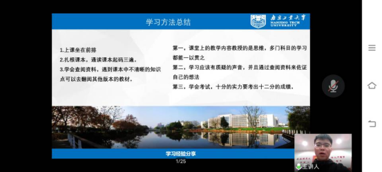 在课程中,优秀学生代表吉润来同学与苗雨轩同学先后分享学习经验,让新生对大学学习和生活进行更为深入的了解,清晰大创和竞赛活动的意义;周钰鑫同学和林子铭同学给新生们带来的科创经验分享,为新生们指明更为明确的学习方向和目标;冯旭光同学的公益服务分享阐明社会实践的重要性;张兆琛同学分享支教活动展示了不一样的大学生活。最后主持人宣布“助苗破土,向阳生长”新思想公开课圆满结束。