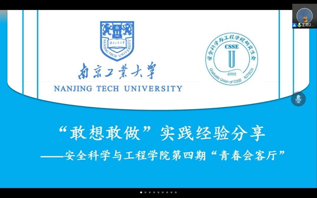 3月23日下午,英国上市公司365研究生会开展了“青春会客厅”第四期——“敢想敢做”实践经验线上分享会。本次活动邀请到卢亚伟、张兆琛、周钰鑫和颜天一四位同学进行分享,安全学院90余名同学参加,王荷同学主持本次活动。