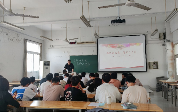 首先,宣传委员张宇杰阐述本次班会的背景,今年是党的二十大召开之年,也是中国共产主义青年团成立100周年。100年栉风沐雨,共青团始终坚定不移跟党走,团结带领共青团员和广大青年前赴后继、勇当先锋,书写了中国青年运动的华章。紧接着从“放歌中国梦,喜迎二十大”、“建团百年心向党,时代青年勇担当”、“喜迎二十大,青春在行动”、“喜迎二十大,党在我心中”和“再走历史航道,回顾历届大会”等六个方面进行了理论知识的分享和学习。班会的最后,以习近平总书记的寄语“未来属于青年,希望寄予青年”号召全体青年,奋战再出发,喜迎二十大,为了实现中华民族伟大复兴砥砺前行。