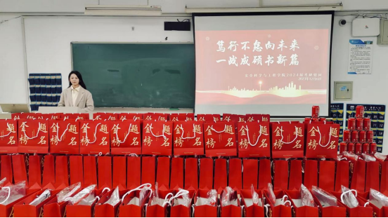 乐平老师从坚定信心、劳逸结合、心态调整、考前准备、考场应对五个方面与同学们分享了备考经验,鼓励大家一鼓作气、坚持到底,跑完考研战场“最后一公里”。同时,她提醒同学们2024届秋招“黄金期”已进入尾声,建议大家在考试结束后,主动把握机会,积极参加各类招聘,多争取一些机会。随后,志愿者们为参加此次活动的同学发放了学院精心准备的“金榜题名考研加油包”。