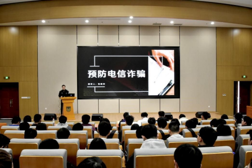会议中,张瑞芳老师强调了当前网络诈骗的严峻形势,提醒广大学生提高警惕,不断增强自我保护意识。张峰林警官结合大量实际案例向同学们普及了十大高发的校园电信网络诈骗类型,深入剖析了诈骗分子的作案手法和心理特征,就如何防范电信诈骗做了专业讲解。他叮嘱同学们要戒掉“贪心”,控制住“不甘心”,知法守法,谨防受骗,并要牢牢遵从“三不”:不理,不信,不转账;做到“一少两多”:少刷短视频,多学习反诈相关知识,多思考,用心守护好自己的“钱袋子”。