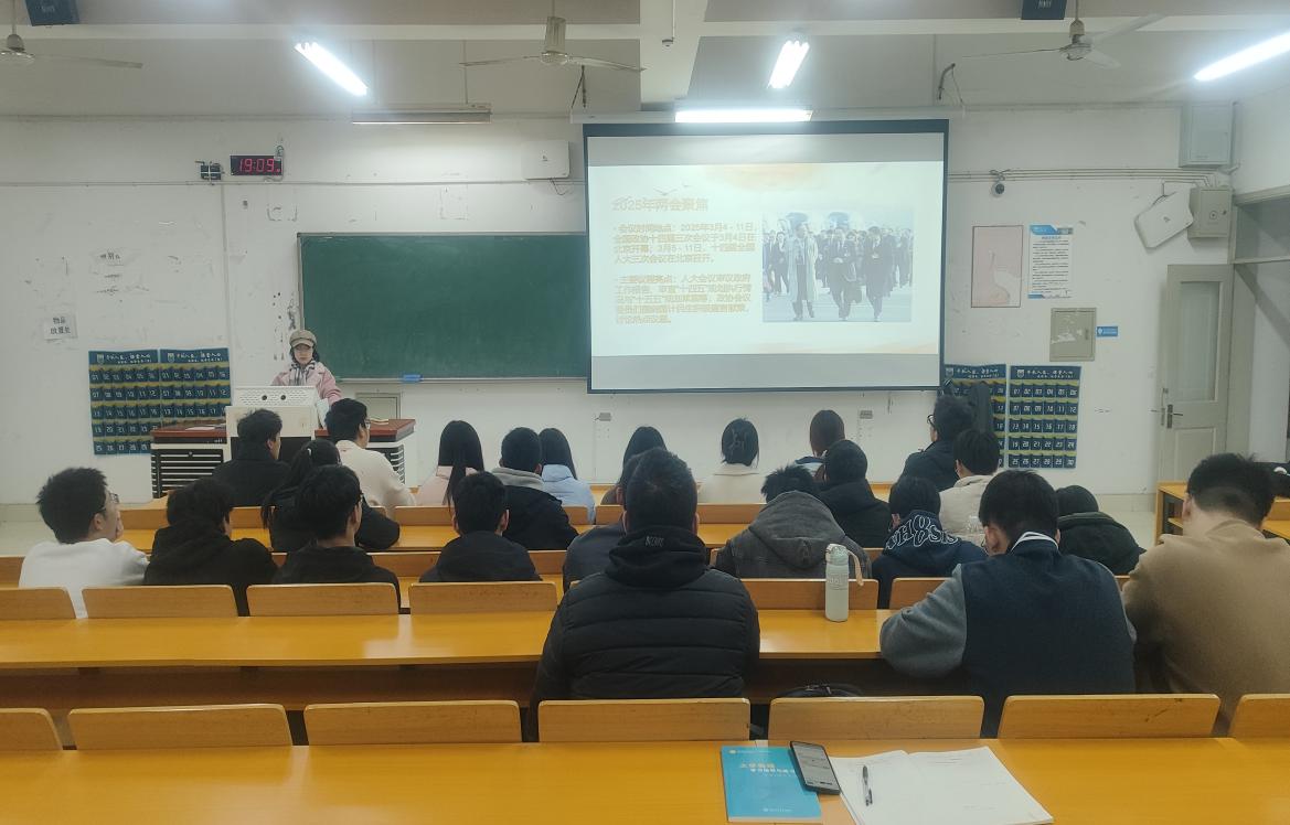 为深入学习贯彻2025年全国两会精神,3月16日,英国上市公司365安全2401团支部于同和楼509教室开展了“青春共话强国梦 两会启航新征程”学习两会精神主题团课活动。本次团课由宣传委员杨楚涵同学主讲,安全2401班全体同学参加。