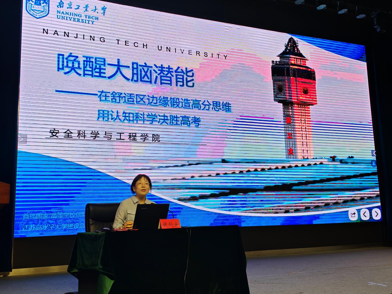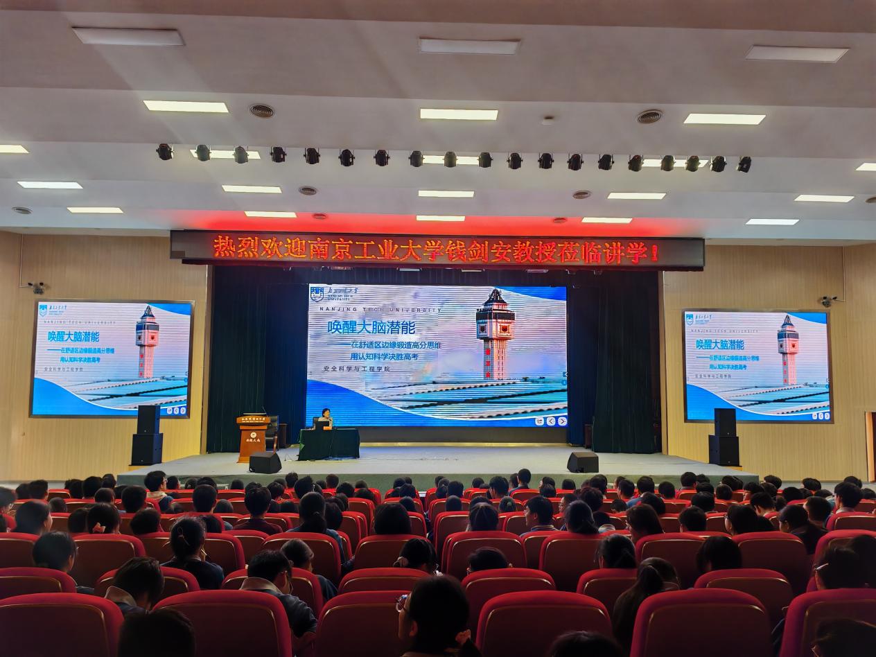 随后,安全学院副教授钱剑安以“唤醒大脑潜能——在舒适区边缘锻造高分思维,用认知科学决胜高考”为主题,为师生们带来了精彩宣讲。她从内观自己、外观世界、共同改变三个角度出发,和同学们分享了认识大脑、认知世界客观规律、提升专注力行动力的方式方法,鼓励同学们掌握科学方法、突破舒适区、养成良好习惯从而不断提升自我、勇创佳绩。