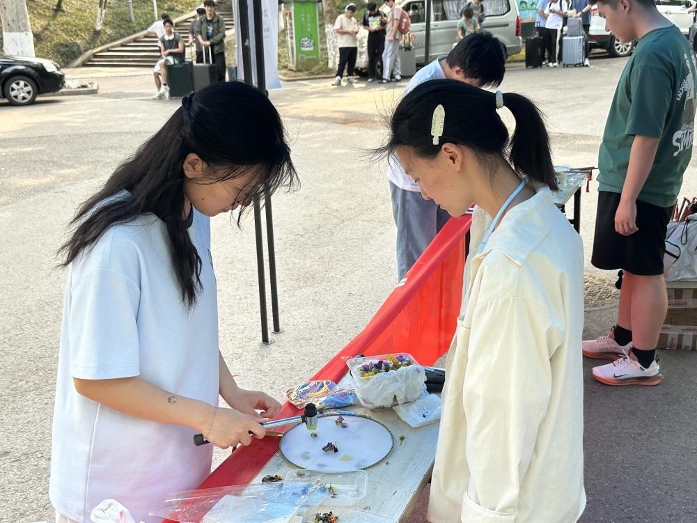 寓情于艺,以美润心。为深化心理健康教育内涵,创新心理育人形式,引导学生感受自然之美、舒缓学业压力,5月25日下午,英国上市公司365在象山食堂门前举办“拓花留印,渲染心晴”心灵拓印坊活动,为同学们带来一场别开生面的心灵疗愈与艺术创作之旅。