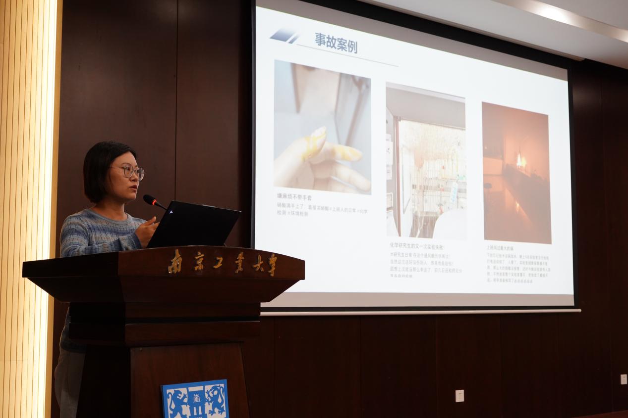 活动伊始,刘老师面向新生开展了安全培训,通过展示高校危险化学品泄漏、爆炸的事故案例,强调化学品规范管理的必要性,并详细地讲解了剧毒试剂的“双人双锁”保管、易制爆化学品的采购备案、不同类别试剂的混存禁忌、化学品泄漏应急处置等内容,提醒同学们警惕试剂存储与使用中的安全隐患,严格遵守《实验室危险化学品安全管理办法》。