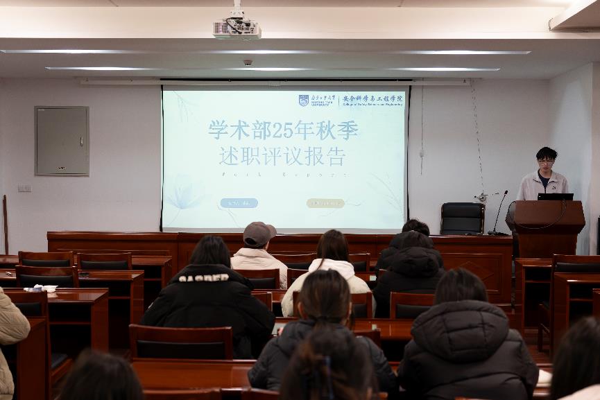 会上,院研究生会主席团成员及各部门负责人依次就本学期工作进展、个人工作情况、部门内任务交接等事项作述职汇报,并根据评议人员的提问进行答辩。