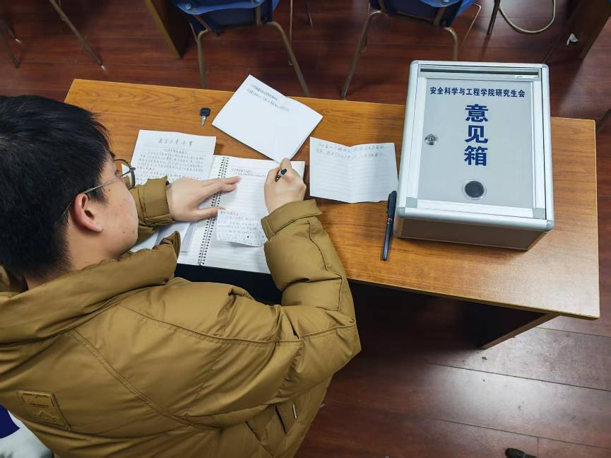 为深入了解研究生在学习科研、日常生活中的需求困惑以及对学院研究生会工作的意见与建议,安全科学与工程学院研究生会于近期开展了“方寸意见箱,咫尺回音壁”意见收集与反馈工作,对同学们的诉求作出了积极响应。