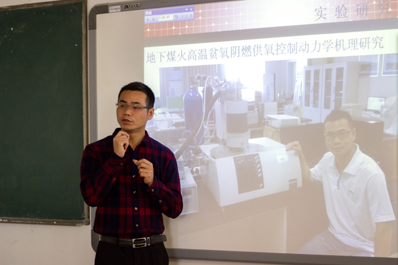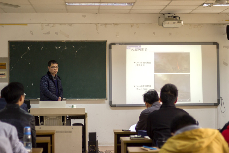 上午,宋泽阳博士以“大尺寸煤田火灾阴燃机理及卫星遥感探测关键技术研究”为题,从煤田火灾现状、实验研究、数值模拟等方面揭示其阴燃机理,并介绍现代先进技术--卫星遥感探测对大型煤田的阴燃状况进行监测的情况。接下来,周魁斌博士的“线火源诱发的火旋风”报告向大家讲解了火灾中的火旋风现象,周博士通过中长尺度实验和涡旋理论研究了直线火源诱发火旋风的物理条件,揭示了诱发物理机制;通过统计分析研究了风对火旋风出现频率的影响规律与机制。然后,王静虹博士通过“大规模人群的疏散路径选择随机性分析”,从应急管理研究现状与问题、大规模人群疏散研究现状、耦合疏散模型等方面分别介绍了应急疏散在非常规突发事件中的重要意义。马鹏博士以“共晶含能材料结构的理论研究”为题,向大家展示了什么是共晶化合物、共晶化合物形成机理、共晶化合物在工程中的应用等内容。最后,龚俊辉博士的“非碳化聚合物热解着火及火蔓延机理研究”报告,深入探讨了非碳化聚合物热解机理并通过先进实验仪器进行实验验证,强调实验研究在英国365中的重要作用。